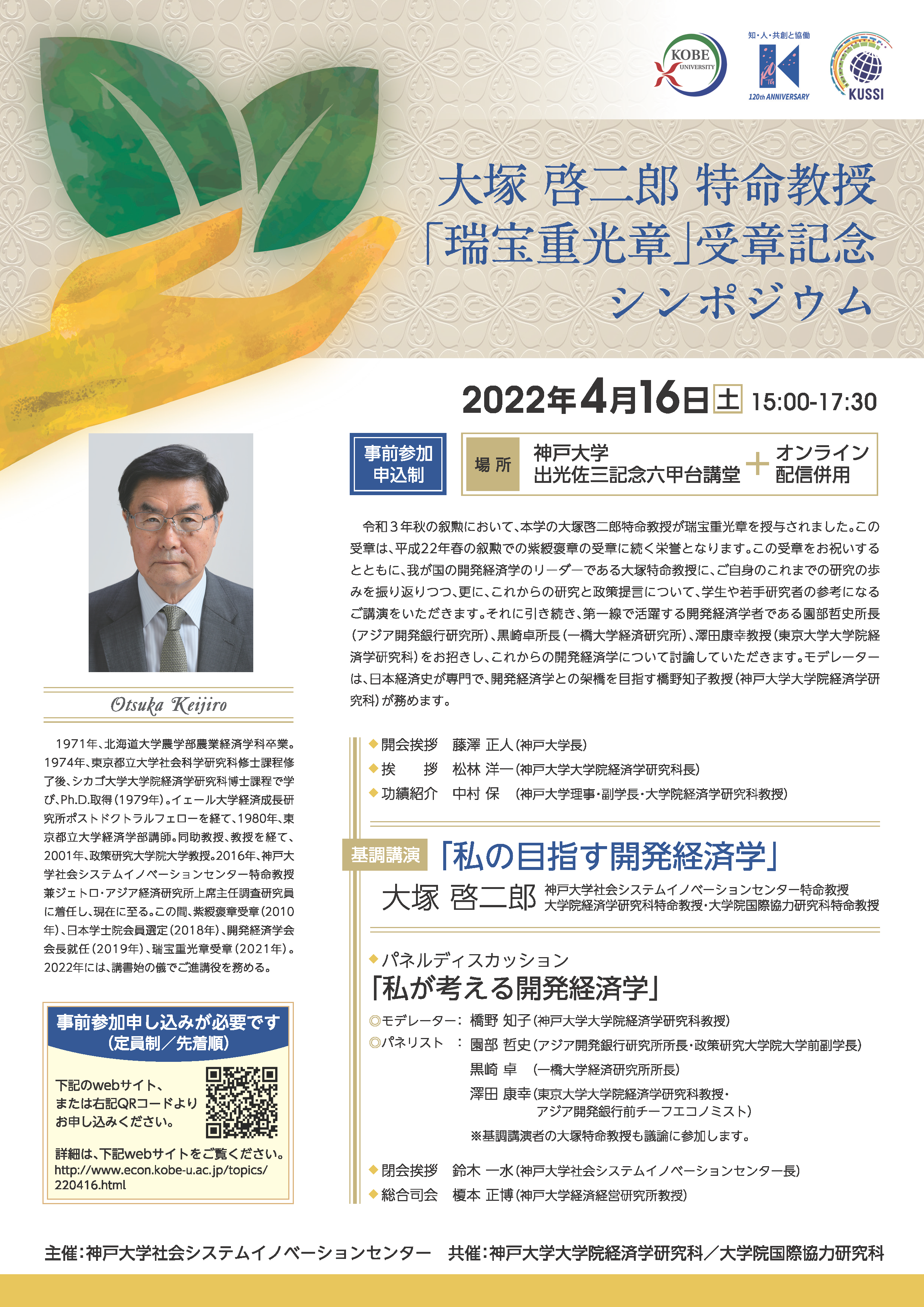 大塚啓二郎特命教授「瑞宝重光章」受章記念シンポジウム:ハイブリッド開催のご案内(オンラインは手話通訳付き)